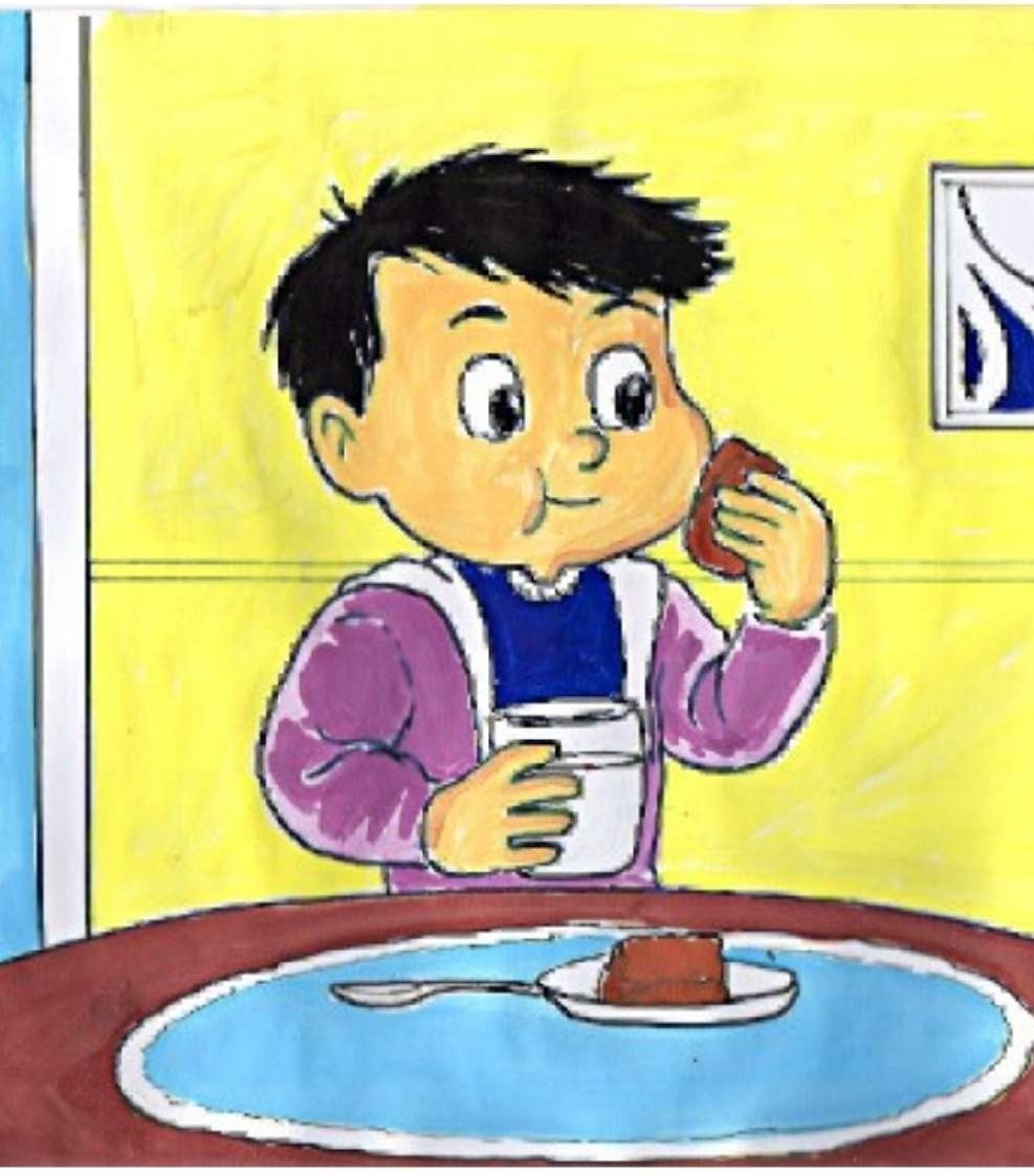 Victor obeyed his mother. When he returned, Mrs. Maria was waiting for him with a glass of milk and a delicious chocolate cake.