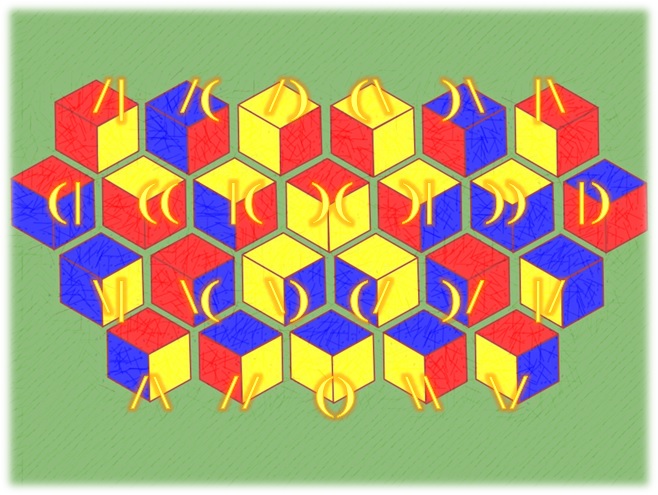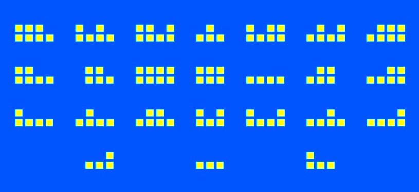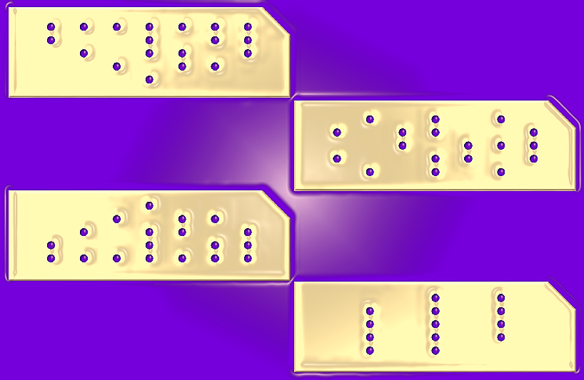 На следующих картинках приведены альтернативные способы изображения или озвучивания буквицы. При помощи точек и двоеточий (тире), пятиполосной перфорации, фигурной раскладкой, цветовыми сочетаниями, положениями кисти руки, посредством мимики и жестов, посредством пар музыкальных нот, поворотом кубика или раскладкой палочек.