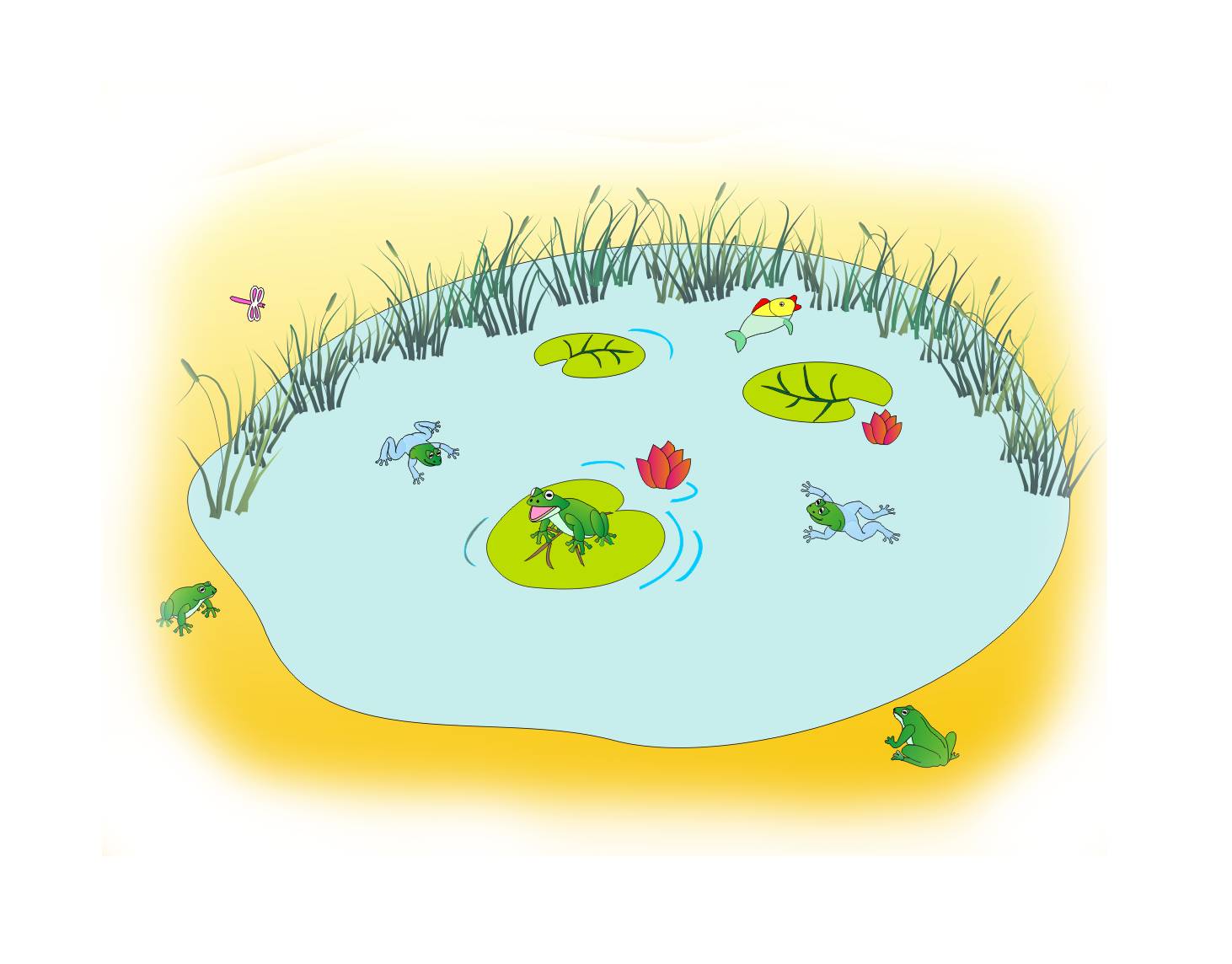 Минут через пять, одна из лягушки осторожненько квакнула. За ней осмелела вторая, третья, четвёртая. Скоро все жители озера громко орали на все голоса. Тогда пожилой человек взял маленький камешек размером с орех прицелился и бросил его в центр водоёма. Земноводные немедленно стихли.