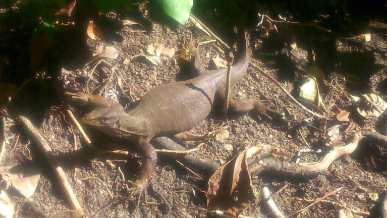 Когда спускались, за нами по пятам шёл, вернее, почти полз, учитывая его маленькие лапки, небольшой варан. Наверное, ещё маленький, поэтому такой любопытный и бесстрашный.