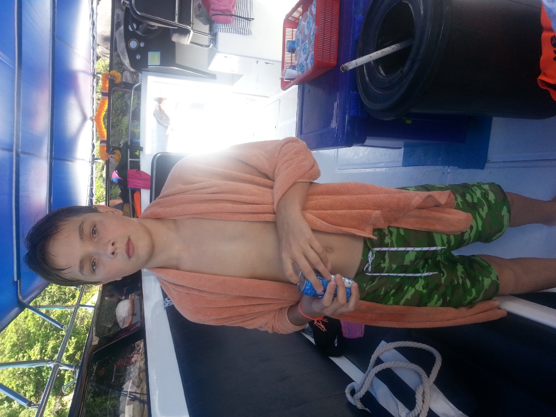 Сели на свой катер, отплыли подальше от берега, одели маски (все кроме меня) и нырнули (все кроме меня).
