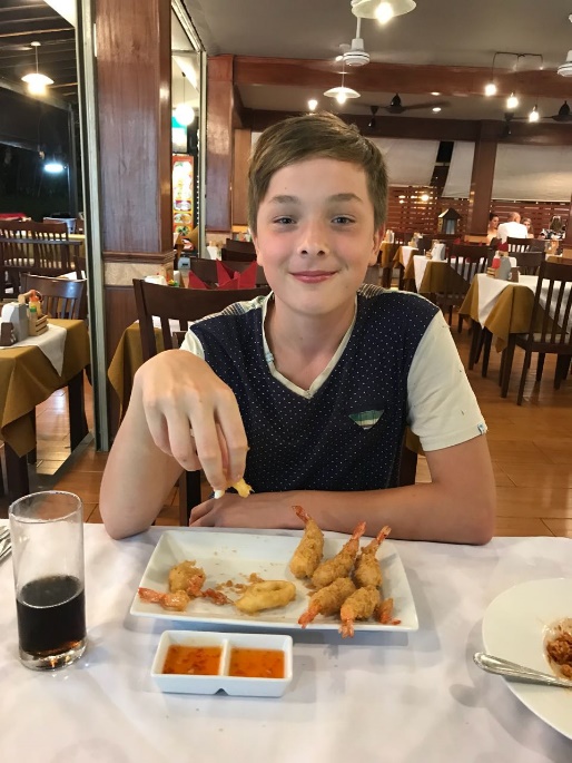 Отлично кормят, очень много фруктов, Димасик набрал ананасы и все их съел.