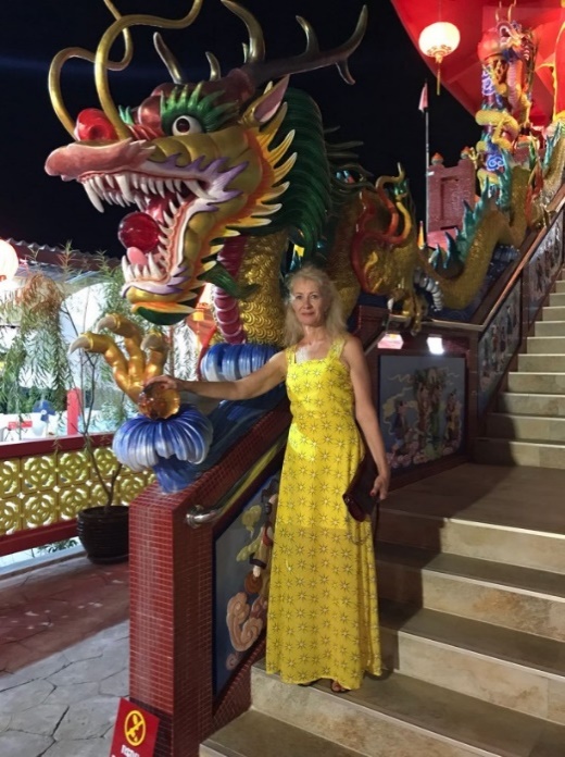 Когда мы утром заходили на катер, нас фотографировали. А когда вернулись, то увидели под пальмой столик с фотками на тарелочках. Центровая тарелка фото со мной. Так как я была в малиновой кофте, то моё фото оказалось самым ярким. Ну, чтож, пришлось купить, двести батт.
