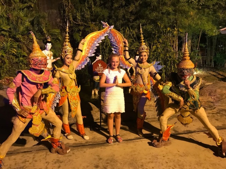 Пошли в зал на представление. Я смогла посмотреть шоу. Красиво, но для детского сада. История Таиланда и королевской семьи.