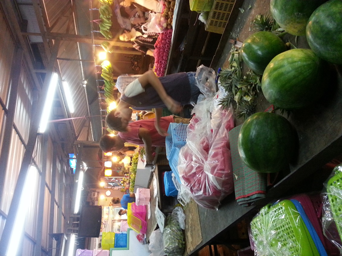 Заехали на рынок и поменяли доллары на батты 1:33,08. Сразу в кошельке прибавилось денежных знаков. Я поменяла 500 долларов, из них 500 батт Игорю за трансферт, купили фрукты на 450 батт, так что почти 1000 батт истрачено.