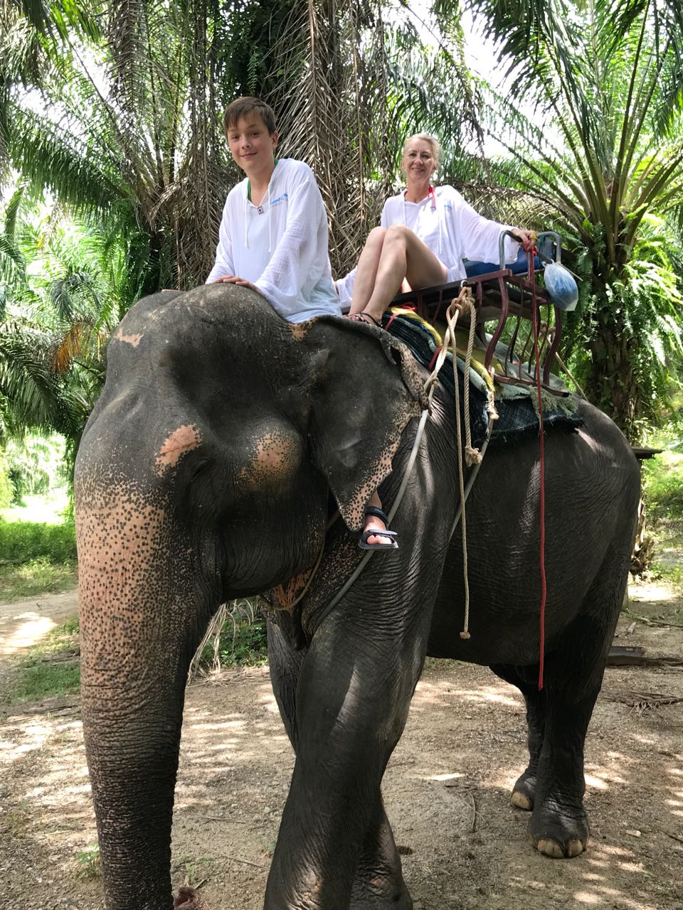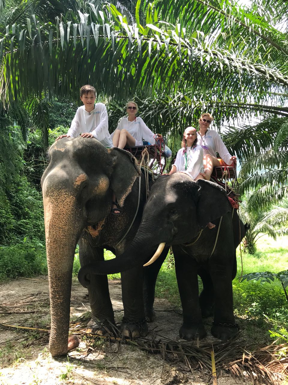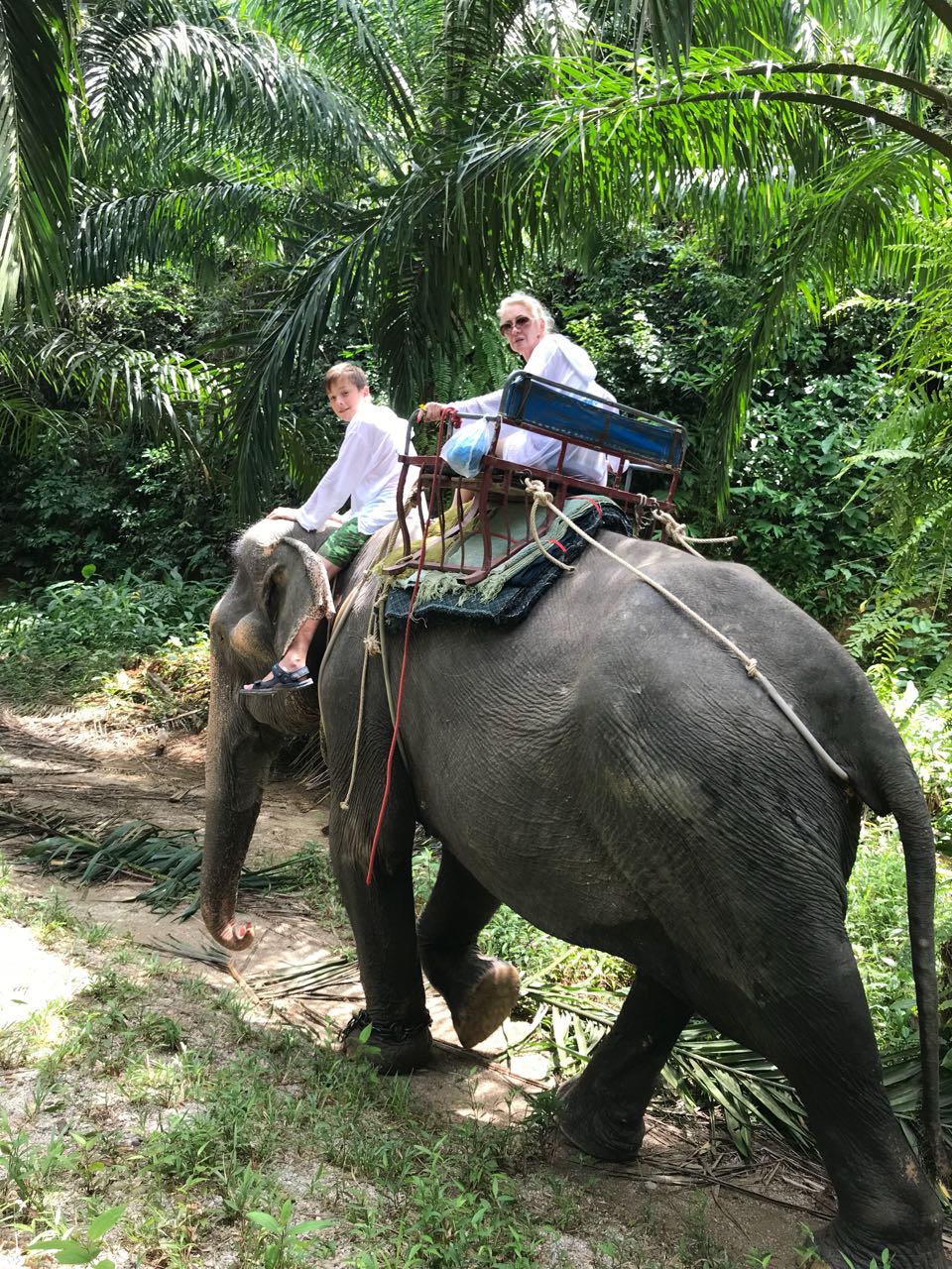 Пошли на слонах в джунгли. Как сказал Андрей, лес – чудес и магии. Наш погонщик взял у Ани телефон, спрыгнул со слона, Димку усадил на свое место и пошёл рядом, фотографируя нас всех. Димуля сидел у слона на шее, а я как принцесса на подушках.