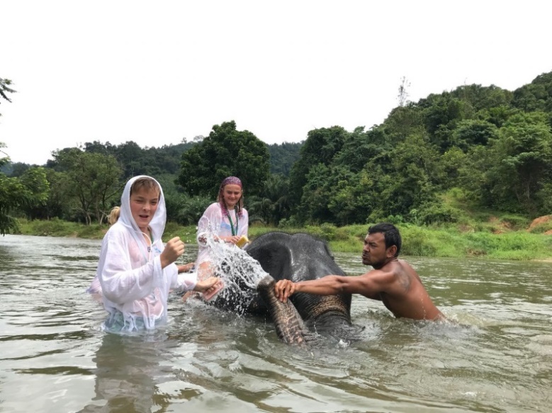 Программа насыщенная. Не успели отойти от слонов, вперед, на тарзанку. Я договорилась, чтобы Дима за меня и за себя прокатился. Доволен как слон.