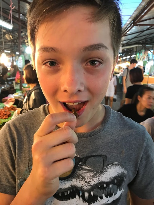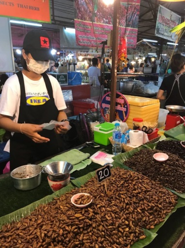 Из всего разнообразия выбрали кузнечиков жареных. Купили жменю и попробовали по одной штуке.