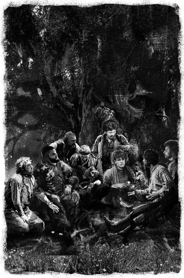 Без промедленья начал речь другой:«Моя монета с головой оленя.Имея знак подобный при себеТы обретёшь великое терпенье,А также осторожность, острый слух,Умение вершить дела не наспех,Как говорится „медленно спешить“,Без неуместной, показной огласки.Тебе вручить монету мне не жаль.За щедрость – соответственная плата.Дать большего, увы, я не могу.И в том моя судьбина виновата…»Когда легла монета на ладонь,Тотчас же говорить стал призрак третий:«Моя монета скрашена орлом.Подобных птиц, ты в жизни много встретил,Но тот, что здесь на злате закреплён,Одарит тебя нужным вдохновеньем,Даст сил, вселит отвагу перед врагом,Послужит возвышеньем и спасеньем».Он более ничто не произнёс.Лишь отдал золотой и встал поодаль.Лицо его светилось добротойИ счастьем от того, что злато отдал.Четвёртый произнёс: «Ты на путиС монетою моей повсюду следуй.Пусть во спасенье суженой, делаОкончатся великою победойНад злом. А сокол, что изображёнПаря на небе плавно и высокоЗаранее тебя предупредитО том, что будет, кажется далёко,Но очень важно… Вот и весь мой сказ».И этот дал монету улыбаясь,А пятый прошептал: «Пусть мой журавль,Средь прочих птиц гуляет не стесняясь.Волшебно он бессмертье принесёт.Жизнь так хрупка… Победа и удачаВажны бесспорно, но продлить их мигНе менее весомая задача».Итог всему стал подводить шестой.Он говорил уже не с Серафимом,А с тем, кто поделился «простотой»,Но денежкой для них необходимой.Её назад как раз он не отдал, а произнёс:«Пятак твой много значит…Ты денежку свою не пожалел,Чем закрепил наличие удачи.То пропуск в тот далёкий дивный мир.Я вижу далеко и знаю точно,Что ты идти парнишку сговорил,И дружба ваша станет очень прочной.Да… Без тебя он в общем-то птенец.В пути нелёгком, парень возмужает,Но истинно людскую красотуСей мастер без тебя ведь не познает.Я одарю тебя наличьем сил,Теплом в душе… добавил бы и света,Но пребываю так давно во тьме,Что не владею тем, чего здесь нету».И говорящий выпучил глаза,Которые тотчас позеленели,Потом сверкнули вспышкой неземнойИ тут же, как и раньше потускнели.Художника пробила даже дрожь.Чего уж говорить про Серафима?Он, как и друг, теперь уж не сиделИ чувствовал, что кровь внутри застыла.Но продолженья не было словам.Виденья, растворяясь, исчезали,И ровно чрез минуту гости местУже одни под деревом стояли.И ждать было нельзя. Тому был знак.Трава вокруг при ветре «зашумела»,И тропы вроде б начала казать,Открыв и застилая то и дело.Поток воздушный причесал траву,И уложил её в подобье круга,Указывая, как нужно идти,Чтоб те могли покинуть место луга.Настало время сотворить обход.Пять раз вокруг пройтись было несложно.Художник, видя тропочку в конце,Почуял, что количество пять – ложно.Он вдруг припомнил, что он не учёлСтук старика при первом появленье.А этот позабытый им ударИмел, как видно, важное значенье.Шестой проход вкруг дуба показал,Что было верным то предположенье.Открылась широчайшая тропаДоступная для лёгкого движенья.Событье это птицы вознеслиВ теряющее тьму ночное небо.И Серафим с художником пошли,Не пожалев для пташек крошек хлеба.Немало Серафим ходил с отцомИ изучал доступную окрестность,Но та, где он теперь ступал ногой,Указывала на иную местность.Казалось, что открылся вдруг проходКороткий в неизведанные страны.Пред ними показался вскоре портОткуда отбывали в океаны.Посл