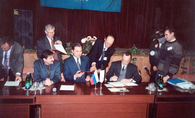 Подписание соглашения между администрацией Красноярского края, КГТУ и Ассоциацией выпускников КПИ-КГТУ, 1998 г.