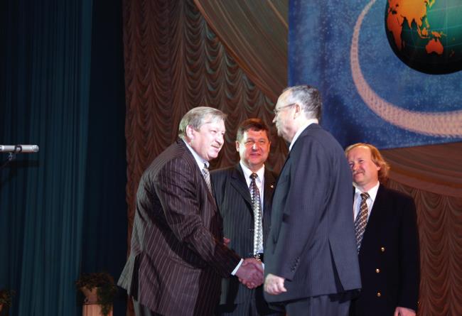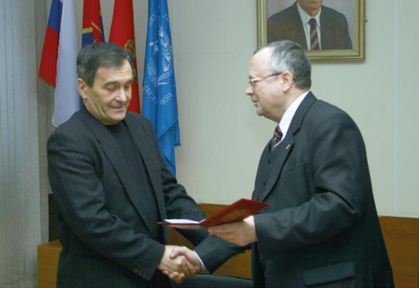 Вручение А. Е. Сафонову аттестата почетного профессора КГТУ, 2005 г.