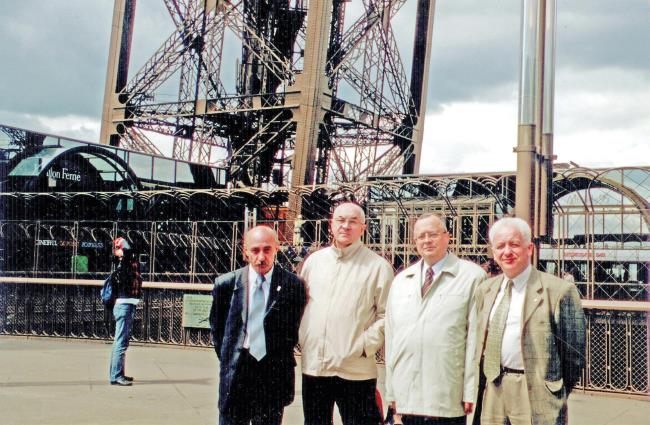 А. А. Михеев, А. С. Дегтерев, С. А. Подлесный, С. М. Зильберман у Эйфелевой башни наУ научном форуме AFES-2004, Париж, 2004 г.