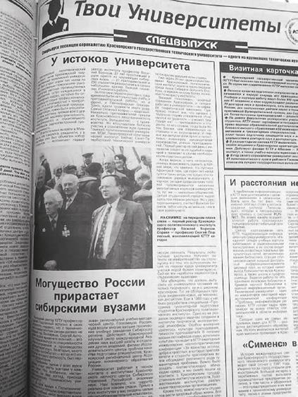 1. Спецвыпуск к 40-летию КГТУ. «Могущество России прирастает сибирскими вузами». № 36–37.14-20 сентября.
