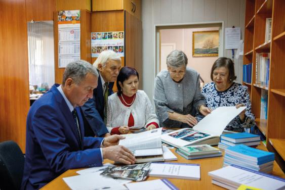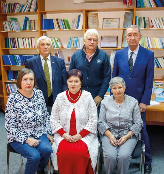 верхний сегмент, первый ряд слева направо – М. А. Вахрушева, А. X. Ильясова, С. М. Геращенко, В.Ф. Веремеев, А.В.Леопа, Л. П. Антолиновская, В.Ф. Веремеев,Ю. Г. Машуков, О. А. Григорьева, Н. Ф. Булгаков, Л. А. Шостак, Л. И. Вейсова, Т. В. Сильченко, В. П. Чинаков, А. Ю. Южанников;