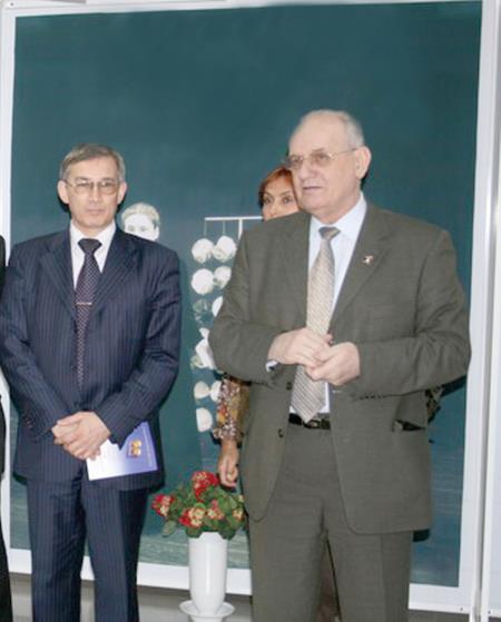 Открытие актового зала в корпусе «А» КГТУ членами Ассоциации выпускников КПИ-КГТУ, 2006 г. (слева направо – А. В. Горовой, А. И. Матюшенко, С. А. Подлесный, А. А. Михеев В. И. Темных)