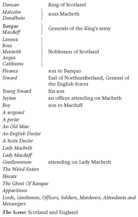No other character in the play is nearly as fully drawn as Macbeth and Lady Macbeth. Duncan is a good old man, reluctant to see evil in anyone. Malcolm is a tougher version of his father, and his personality seems at one point to veer towards interesting complexity (in the long conversation with Macduff at the English court). Banquo acts as a foil to Macbeth, as a man similarly tempted but too staunchly honourable to fall into evil ways himself – though he appears to do nothing to follow up his suspicions of Macbeth. Even Macduff, although he becomes the tyrant’s executioner, does not develop into a particularly subtle personality, perhaps because we are not allowed to see him agonizing over the decision to leave his family and go to England. All these supporting characters revolve around Macbeth and Lady Macbeth, however. After Macbeth has died, we just feel confident that those who have survived will lead Scotland wisely and well.