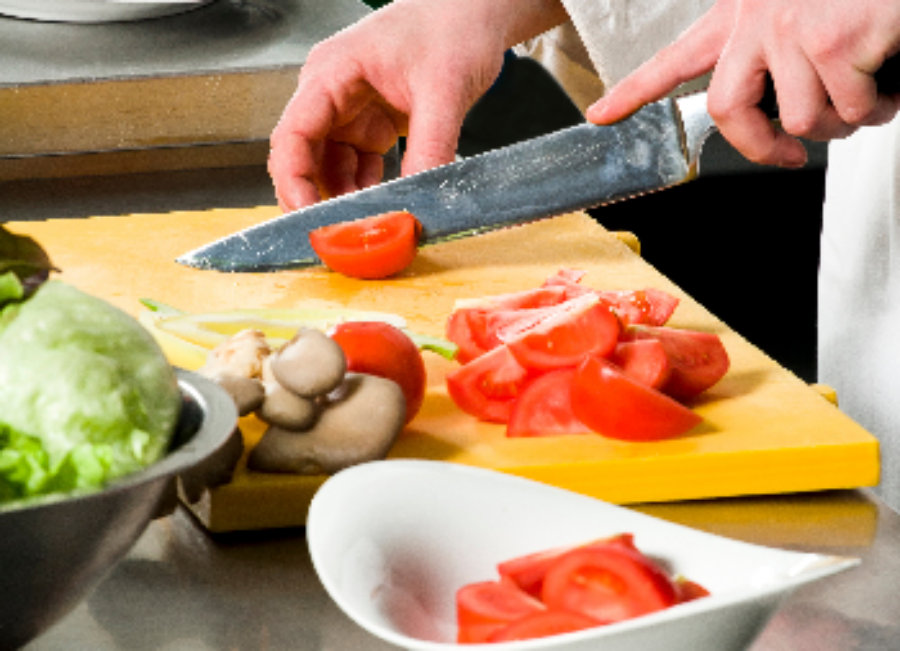 3. Нарезать томаты. Нарезать сладкий перец. Добавить томат, сладкий перец.