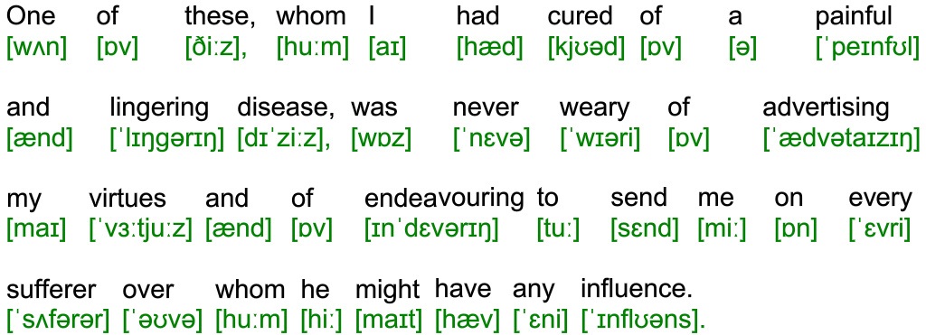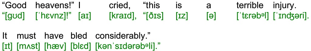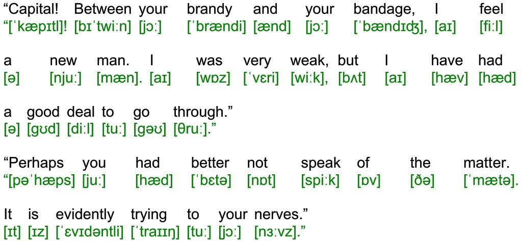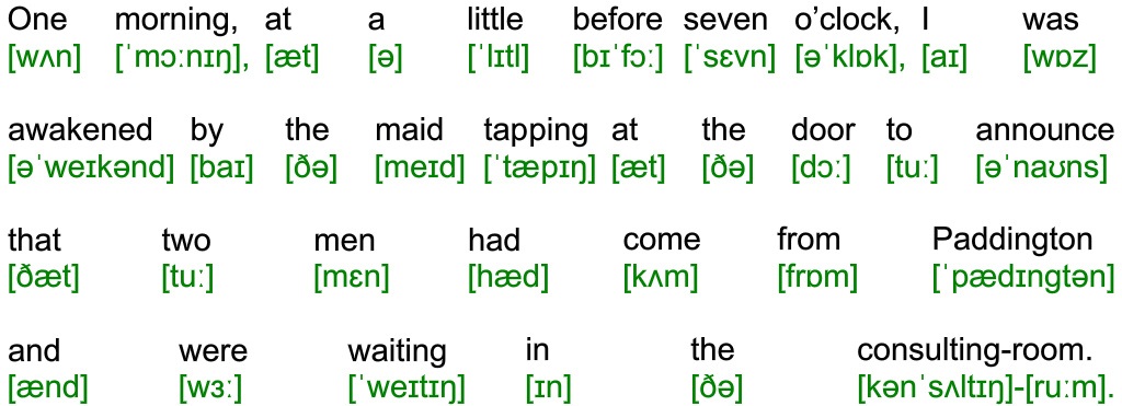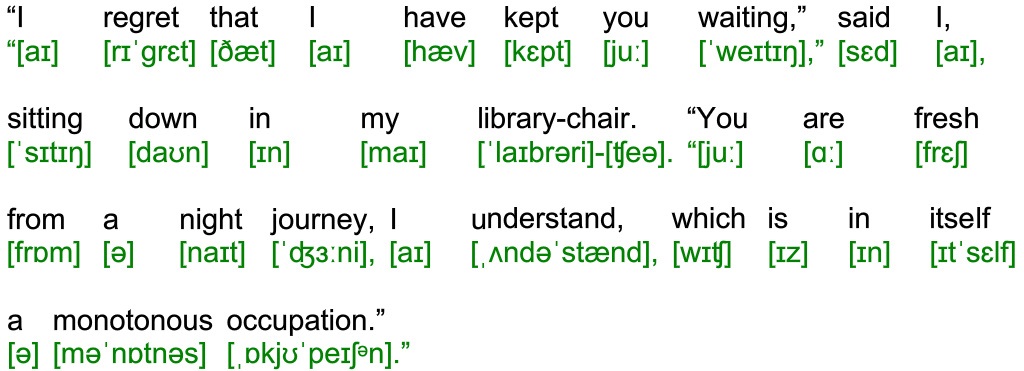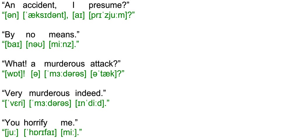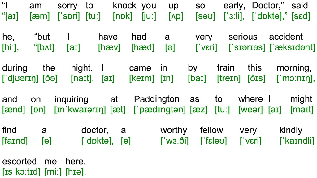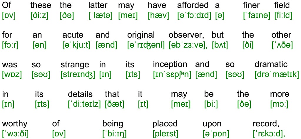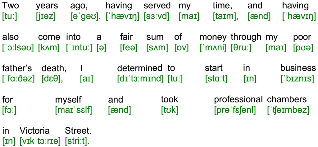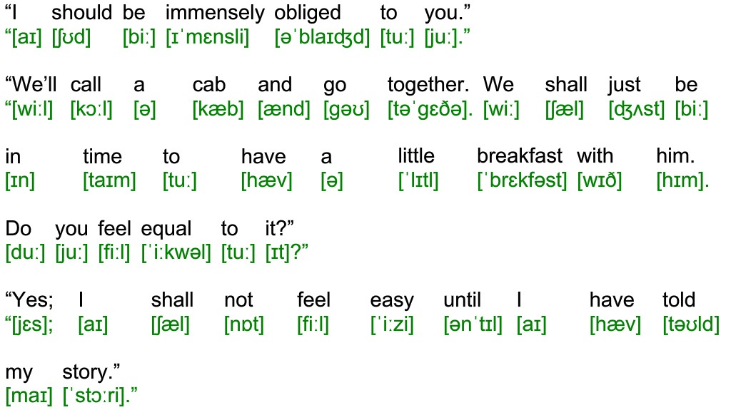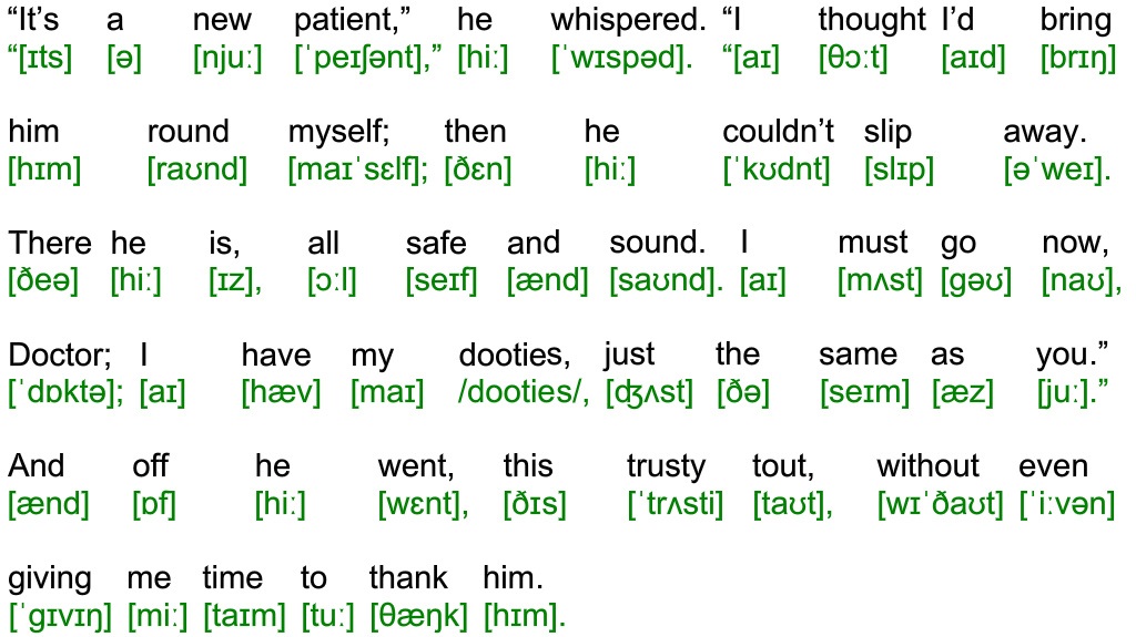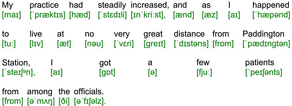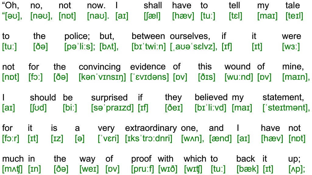 В данной книге приводится транскрипция текста рассказа А.К. Дойла «Палец инженера» на английском языке. Текст рассказа разбит на небольшие фрагменты. Фрагменты пронумерованы порядковыми номерами (01, 02,…,60). После номера фрагмента приведены время начала и окончания аудиозаписи текста фрагмента в аудиокниге. Для каждого фрагмента подготовлена транскрипция текста, оформленная в виде иллюстраций с изображением транскрипции текста фрагмента.