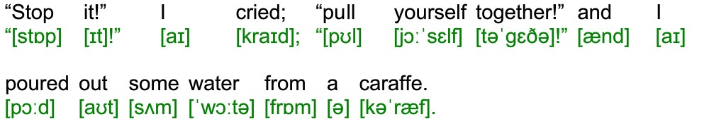 “Stop it!” I cried; “pull yourself together!” and I poured out some water from a caraffe.