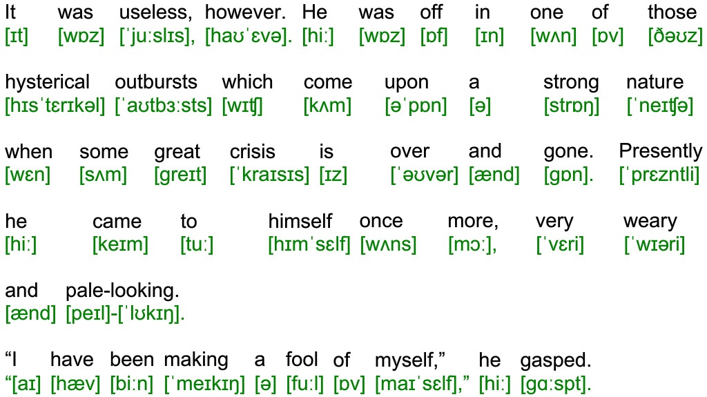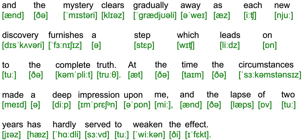 Таким образом, чтение рассказа производится с «подсказками» в виде транскрипции и прослушиванием аудиокниги.