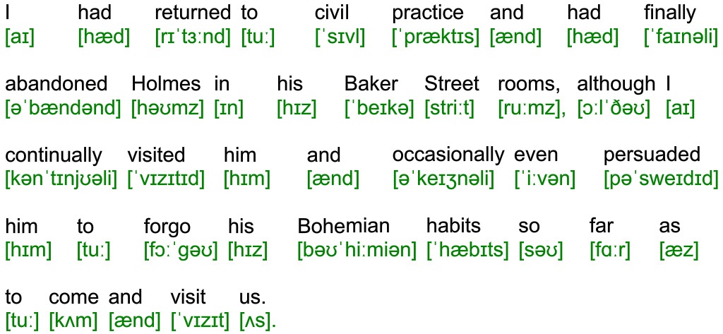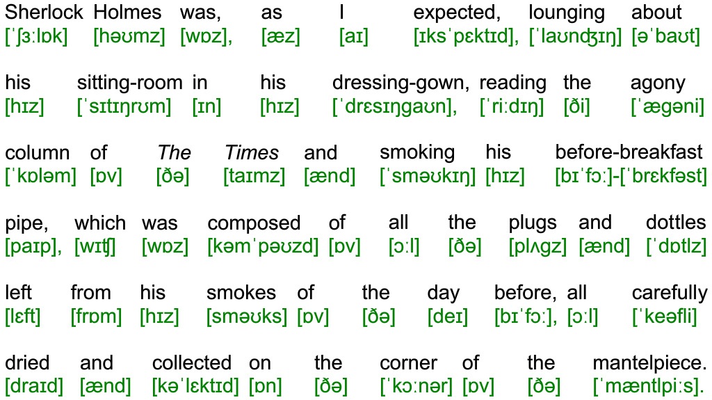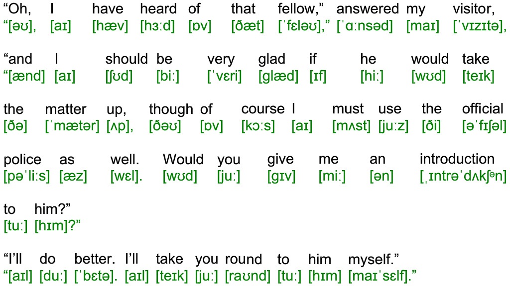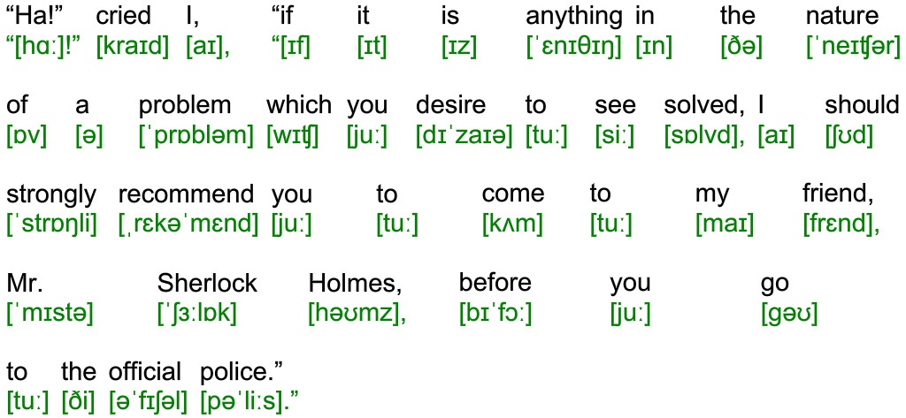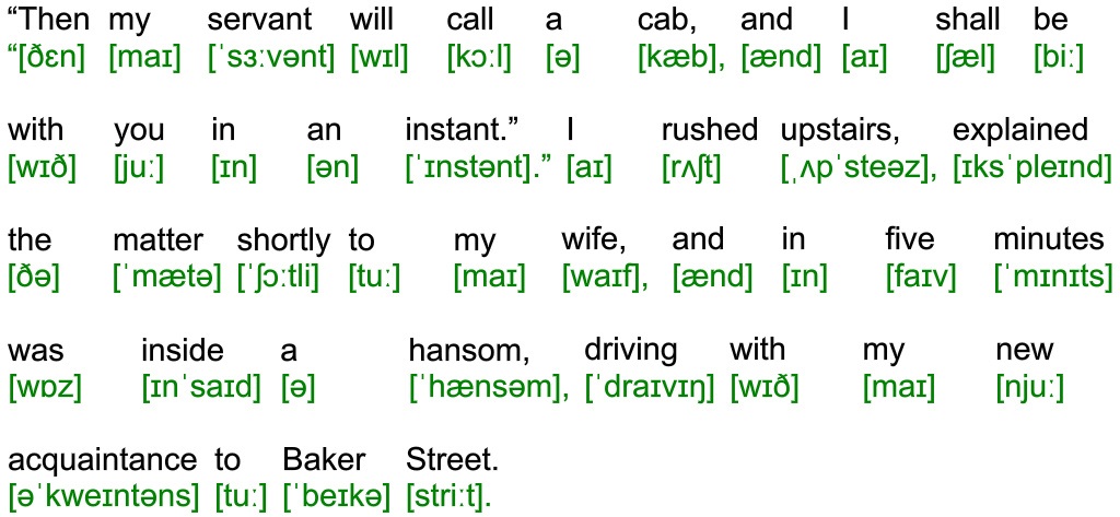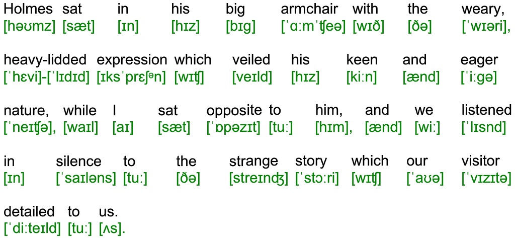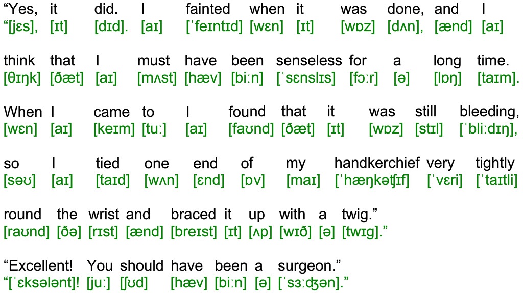 Для подготовки книги использована бесплатная электронная книга с публичного сайта Project Gutenberg (http://www.gutenberg.org/ebooks/1661). Транскрипция, записанная символами международного фонетического алфавита, выполнена с помощью онлайн-переводчика английского текста в транскрипцию – toPhonetics (https://tophonetics.com/ru/). Автор онлайн-переводчика – Дмитрий Янс. Бесплатная аудиокнига с публичного сайта Librivox (https://librivox.org/the-adventures-of-sherlock-holmes-version-4-by-sir-arthur-conan-doyle/) озвучена носителем языка (David Clarke).