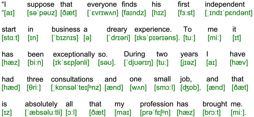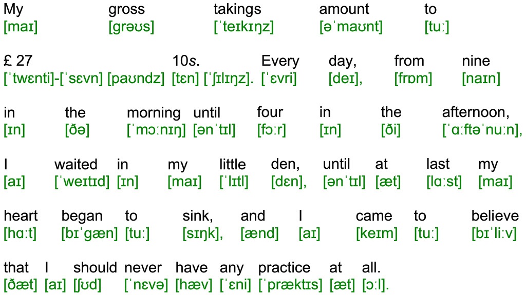 “I suppose that everyone finds his first independent start in business a dreary experience. To me it has been exceptionally so. During two years I have had three consultations and one small job, and that is absolutely all that my profession has brought me. My gross takings amount to £ 27 10s. Every day, from nine in the morning until four in the afternoon, I waited in my little den, until at last my heart began to sink, and I came to believe that I should never have any practice at all.