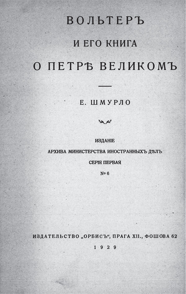 * * *Как уже отмечалось, собственно историческое и источниковедческое изучение эпохи реформ в трудах Е. Ф. Шмурло шло параллельно с исследованием литературы о Петре I. Памятуя о вводном характере настоящей статьи, обратим особое внимание на этот аспект научного творчества ученого, блестящим завершением которого была книга о вольтеровской «Истории» Петра I.