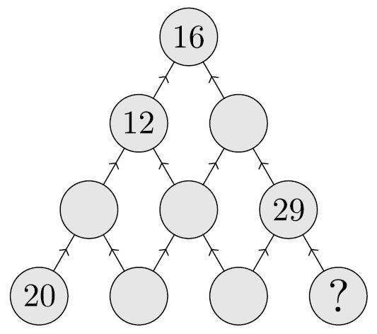 Задача 17В кружки на рисунке записали среднее арифметическое над каждыми двумя соседними числами, а потом часть чисел стёрли. Какое число было в правом нижнем кружке?