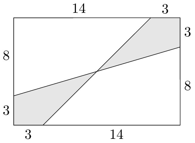 Дан прямоугольник 11x17. Чему равна площадь закрашенной фигуры?