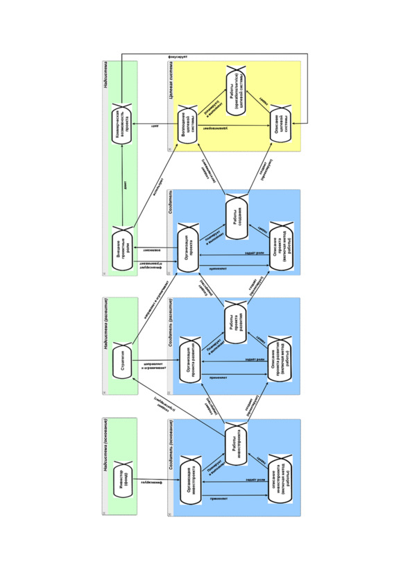 Вот это всё мы должны найти сейчас в менеджменте, понимая, что создаётся организация::система. Сложности ещё и в том, что одни и те же люди::агенты создают организацию в роли создателей и работают в этой созданной организации как её части-сотрудники. Поэтому лишний раз подчеркнём, что говорим о ролях, исполняемых агентами (со всеми обычными оговорками, что это может быть одна роль, исполняемая несколькими людьми, один человек, исполняющий несколько ролей, некоторые роли можно отдавать компьютерам, но потом считать, что их выполняет владелец компьютера, владелец компьютера может оказаться оргзвеном из полусотни человек с самыми разными ролями и т.д.).