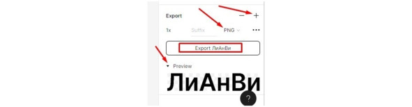 Теперь нам надо этот текст преобразовать в PNG-формат. Для этого сохраним его в PNG. В правой колонке в разделе «Export» выберем значения указанные стрелками и нажмём кнопку. Сохраним к себе на компьютер файл в формате png.