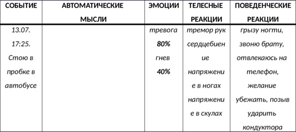 N.B. Постарайтесь вспомнить и зафиксировать как можно больше мыслей, которые вы успели подумать в конкретной ситуации.