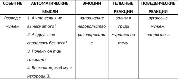 Таб. 21. Корректный вариант заполнения дневника мыслей СМЭР