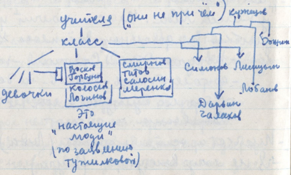 Галахов рисует схему! Схему отношений внутри класса, схему неразберихи, разобщенности, отсутствия дружбы и т.д., и т.п.
