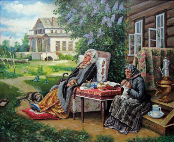 Она, неспешна, как большой фрегат.Седьмую допивает чашку чая.На платье сплошь алмазы, жемчуга.В душе томленье, барыня скучает.Ей пляшут скоморохи и медведь.Но больно растревожит душу скрипка,И вновь гуляет по крестьянам плеть,И вновь рыдает поротый Антипка.То вдруг зовет чернавку на обед.Ей вилку подает к тарелке супа.То вдруг насыплет ей в подол конфет,Служанка лупает глазами глупо.А то и спросит дуру невзначай:На сердце есть ли кто из милых другов.И подливает водку дуре в чай.Та всё расскажет. Барыня – подруга.Что уж она просватана давно,Что милый ей цветы под окна носит,Она же к милому через окно.И, осмелев, на свадьбу рублик просит.А барыня от зависти черна:Ведь у крестьян, и то любовь бывает.Она лишь, горемычная, одна.Года идут, краса и убывает.И молвит волю, точно Божий глас.Кого продаст, кого в сердцах запорет,Кого сошлет, чтоб не мозолил глаз.И только в радость ей людское горе.Она живет, не ведая забот,Как на дрожжах растут её телеса.И в черном теле держит свой народ.Но тут сосед приехал из-за леса.Лукавый, бойкий и хорош собой.Костюмчик тонкий. Видно заграничный.И ну, хвостом вилять перед вдовой.И галстух есть, и выговор столичный.И, хоть не сразу, барыня сдалась.А после свадьба, пир большой, богатый.Муж по двору ходил, почуяв власть.На пересчет доход, крестьян и хаты.– Ах, милая, мне денежки нужны.Затеял пруд я по англицкой моде.И очи томные его нежны.И пусть прудов и рек хватает вроде.Она подарит пруд и лошадей.Простит костюмы, карты, сани.А люди что? А что ей до людей?Влюбленная покорней кроткой лани.За годом год. Ветшает дом и сад.Уехал муж. «Дела», – он в письмах пишет.Кто любит, тот обманываться рад.Вот только денег… Починить бы крышу.Сдает и сама барыня, сдает.Умом слаба, и телом стала тоже,К себе служанку верную зовет,Чтоб по привычке залепить по роже.Но падает рука её, дрожит.Бессилие старуху жутко бесит.И от бессилия слеза бежит.Служанка старая белье развесит.Поставит чай и примется вязать,Так до заката время коротая,Пропустит петли, уж не те глаза.И жизнь, остатки книги их листая,Судьбу, как нитку, их соединит,Дни бисером последние нанижет.Ведь одиночество, оно роднит,Когда все в прошлом, люди ближе…Белый платочек