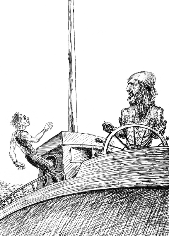 Однажды в шторм Умберто увидел отличный корабль, непохожий на те, что видел раньше. Корабль размером с арабский дау шел без парусов, его вихляло из стороны в сторону. Погода была скверная, волны поднимались выше и выше. Любая могла увлечь корабль на дно. И вот тогда Умберто поднялся на борт, чего раньше никак не решался сделать.