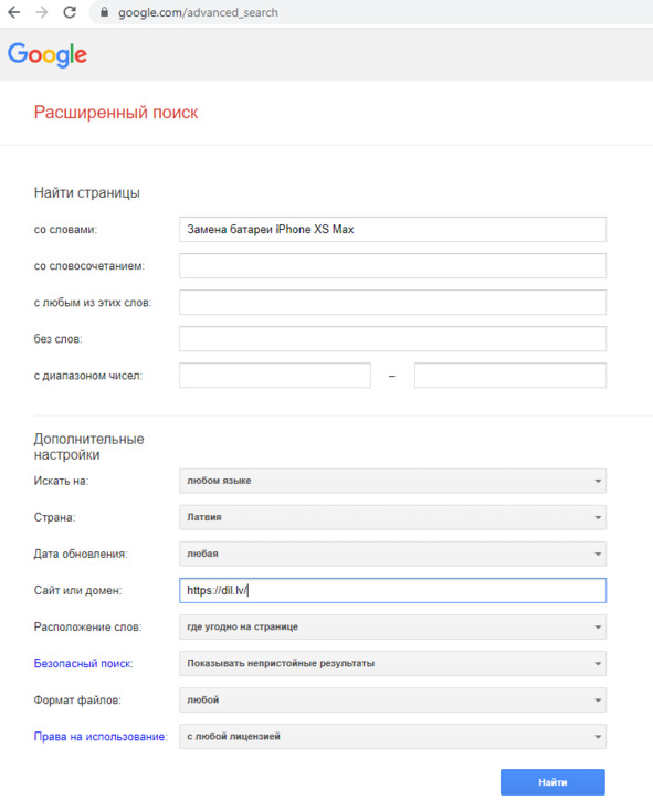 Есть и дополнительный и расширенный поиск на google.com/advanced_search. Этим сервисом не так часто пользуются посетители, но лично я на новых сайтах проверяю, что подхватывает поисковик в заголовке и описании вывода.