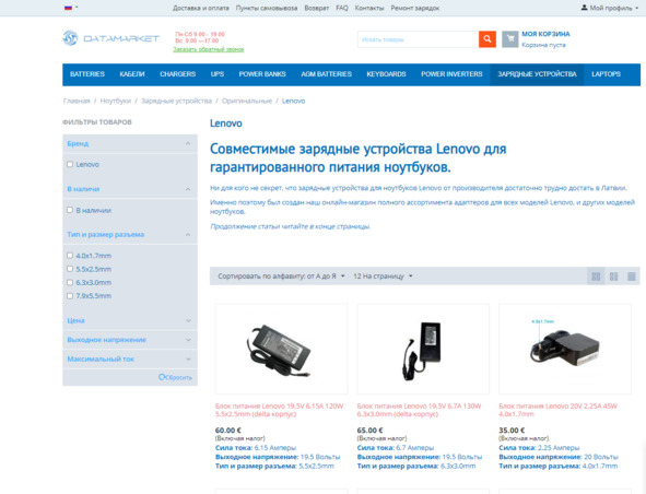 Страница магазина товаров: цель – продать или предоставить информацию о товаре.