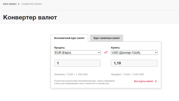 Страница конвертера валют: целью является расчёт эквивалентных сумм в разных валютах.