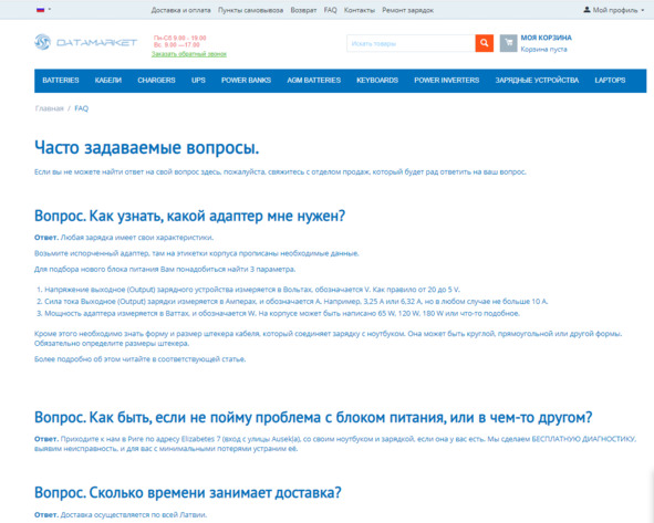 Страница часто задаваемых вопросов: цель состоит в том, чтобы помочь посетителям сделать правильный выбор зарядного устройства и приобрести его.
