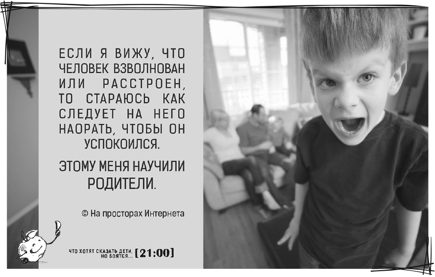Глубоко, ой как глубоко засажены корни родительских ориентиров и эмоциональных шаблонов в поведение детей. И примеров, когда дети не могут вырваться из жерновов родительских моделей поведения, можно привести тысячи. Да они и приведены в сотнях книг. Вопрос в том, сколько подобных книг читают среднестатистические мама и папа за первые 10 лет воспитания ребенка. Вот вы сколько книг по поведенческой, подростковой психологии, по эмоциональным реакциям читаете в год?