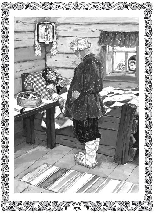 – Гляди-ка, друг Илюшенька, сколь твоя бабка пера накопила! Чуть не полное решето! Да и перышки какие! Одно к одному – мелконькие да пестренькие, глядеть любо! Прими в поминок – пригодится!