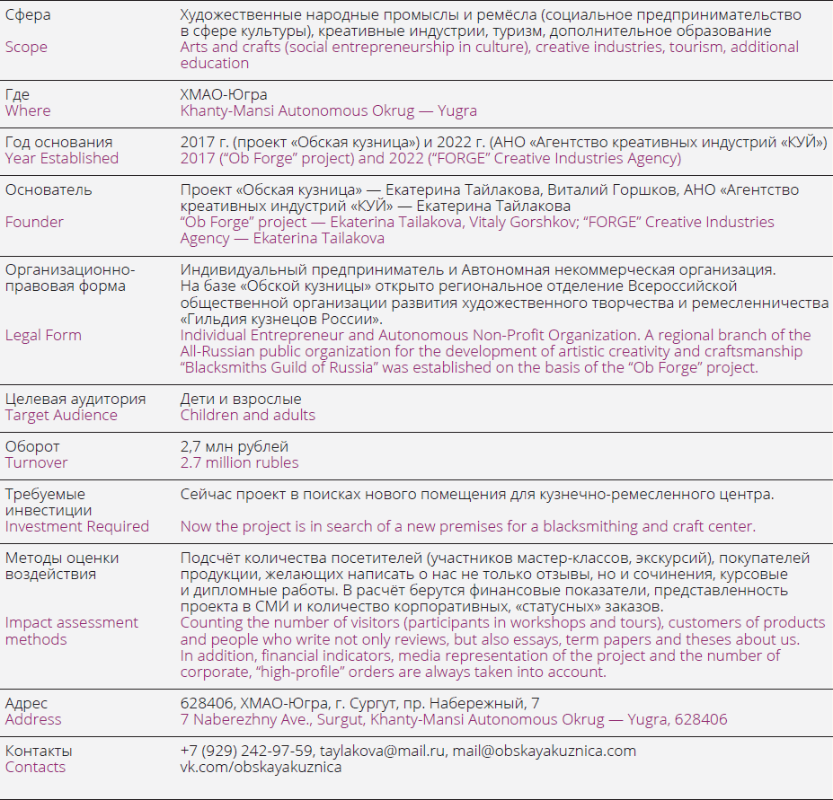 The “Ob Forge” project unites artisans and craftsmen producing souvenir products from metal. Since August 2022, it became a part of the “FORGE” Creative Industries Agency, which promotes local brands in and beyond Yugra.