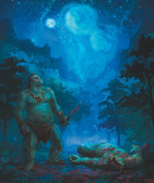 Водук недолго думал и вонзил кинжал из аталатита прямо в подбородок своего приятеля. Оружие прошло через рот, сквозь голову и кончик лезвия вышел из макушки зеленокожего. Бездыханное тело урума упало в траву, обагрив её кровью.