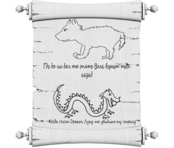 – Странные какие-то стихи, – это Ларри развернул свиток и сунул туда нос. «Когда съест Дракон Луну, ты, увидишь ту страну». Странное что-то. «Где бы ни был ты опять, Волк вернет тебя назад», – чушь какая-то, – и Ларри хотел положить свиток на полку.