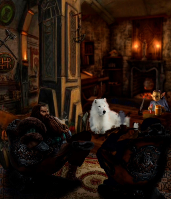 Ратчер в задумчивости курил трубку. Как хорошо, что гномы не имеют эльфийской заносчивости и работу можно совместить с курением великолепного табака, насладиться вкусным угощением и старым вином. Рядом в глубоком кресле сидел Правитель Фаин Тяжелый Молот. Гном поставил ноги на теплую каминную решетку и закурил. По комнате поплыл ароматный дым. Гоблин Брейг с комфортом сидел на невысоком табурете спиной к горящему камину и записывал на пергаменте своим мелким четким почерком беседу Ратчера и Фаина. Буран сыто жмурился, но внимательно ловил каждое слово Правителя Подгорных Чертогов.