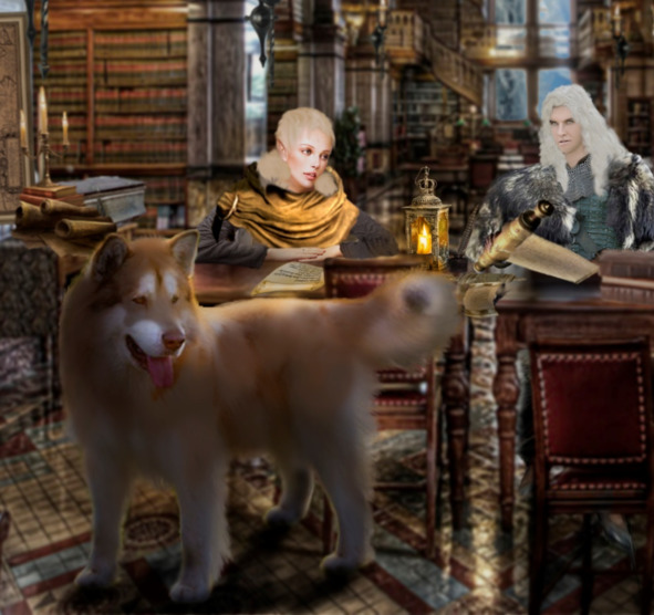 Через час раздался звук колокольчика, зовущий всех в Обеденный Зал. Там уже был Буран. Его вымытая и высушенная белоснежная шерсть блестела в свете свечей. Тут же был и хозяин дома, глядевший на него и задумчиво теребивший бороду. Хранитель посмотрел на миури и сказал: – Господин Снежный Буран, я приношу свои глубочайшие извинения, но, как мне расположить вас за столом? Понимаете, я никогда не принимал у себя собак.