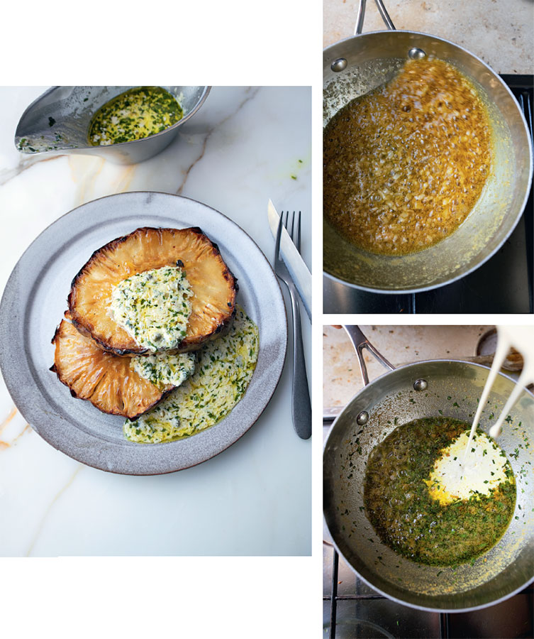 Давным-давно в Париже Икста как-то заказала стейк с соусом «Кафе де Пари», и ей показалось, что она попала в масляный рай. Это детское воспоминание, навсегда запечатлевшееся в ее памяти, стало основой для создания данного блюда и целой череды его противоречивых версий, в которых мы несколько лет пытались раскрыть изначальный секретный рецепт. Мы, наверное, никогда не узнаем, близка ли наша версия к оригиналу, но она определенно делает сельдерей основательно мясистым и превращает его в прекрасную альтернативу воскресному жаркому (подайте сельдерей с ломтиками салата айсберг и кремом из баклажанов и запеченным картофелем).
