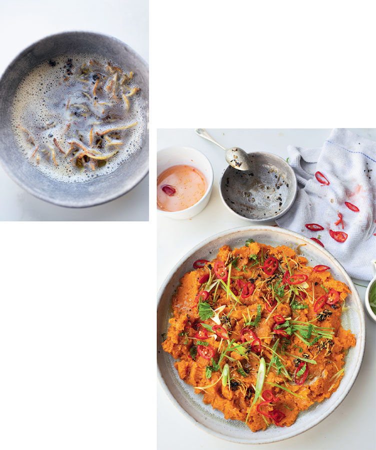 Пюре и маринованный чили можно приготовить накануне, однако масло следует готовить незадолго до подачи, чтобы добавленные в него семена оставались хрустящими. Используйте оливковое масло вместо сливочного, если хотите приготовить веганскую версию.