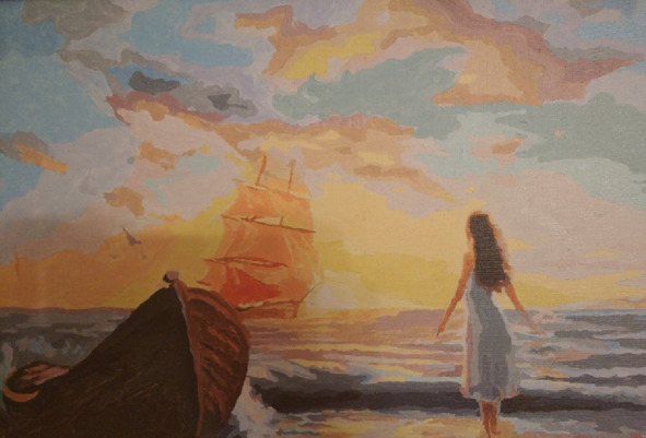 А в море я увидела Корабль! Корабль с Алыми парусами! Совсем, совсем как в сказке – от него отплыла шлюпка, в которой сидело несколько матросов.